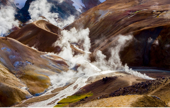 Kerlingarfjöll est une région préservée que l’on retrouve rarement dans les itinéraires classiques. Ce site, accessible seulement 4 mois sur 12, reste l’un des secrets les plus envoûtants d’Islande. Randonner dans ce décor irréel de solfatares fumantes, de sources chaudes et de montagnes rhyolitiques aux teintes ocre, rouges et dorées est une expérience unique. La légende de la “montagne de la sorcière” accompagne naturellement l’expérience : on raconte qu’une vieille femme, surprise par la lumière du jour, fut transformée en pierre, laissant son empreinte dans les formes du paysage.