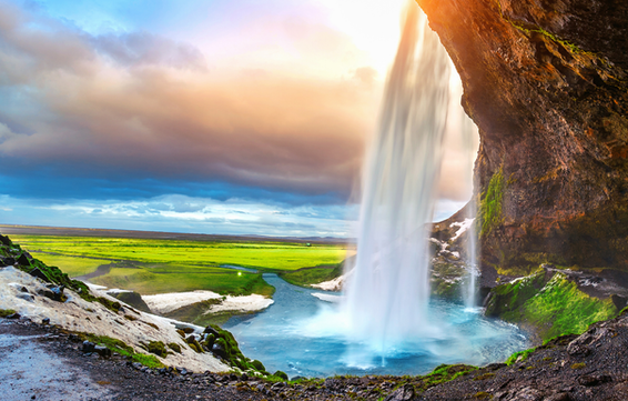 Découverte des célèbres cascades Seljalandsfoss et Skógafoss puis exploration de la mystérieuse plage de sable noir de Reynisfjara et ses hautes colonnes basaltiques.